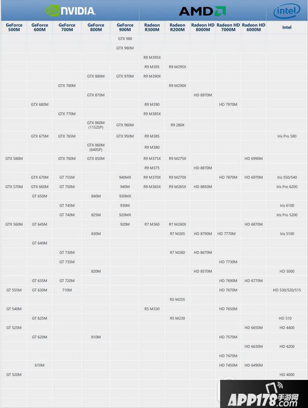 笔记本显卡天梯图2016: