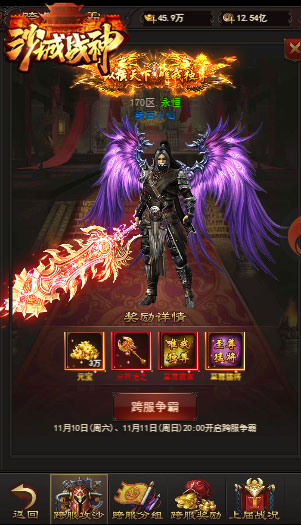 跨服争霸小组赛冠军和决赛冠军都可以给所在服务器带来全服福利,在跨服争霸决赛活动中成功占领沙城的帮会会长有资格获得分而治之武器装扮及至尊霸主的荣誉称号。