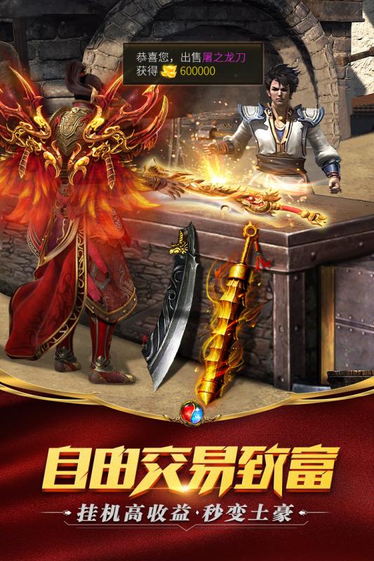 2019轻松挂机传奇手游!宝强代言、小罗推荐、盛大正版授权,在传霸兄弟之《屠龙破晓》,沙城野战、BOSS围猎、野外PK、全服天梯、公会争霸等玩法悉数登场,满足消遣碎片时间的一切需求!离线收益、极速升级,成长变强超轻松!高阶神装、绚丽翅膀、稀世称号、酷炫技能、传世神威,多种自主个性系统,由你定义与众不同
