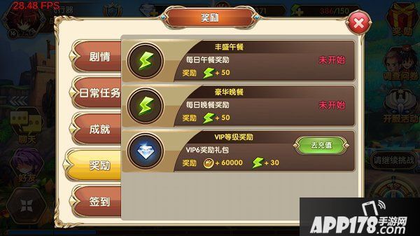 奖励:可以领取到每天中午和晚上额外送的体力和VIP奖励