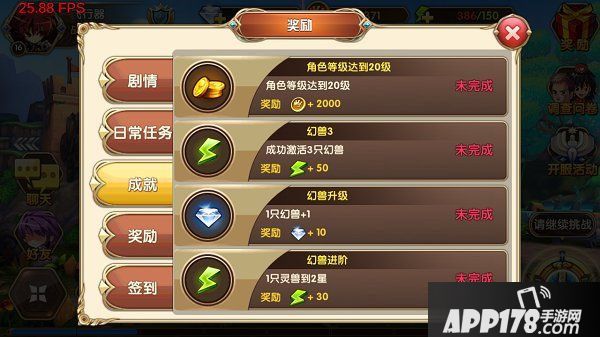 奖励系统,是小编我最喜欢的系统,目前《艾尔战记》里奖励分为剧情、日常任务、成就、奖励、签到。
