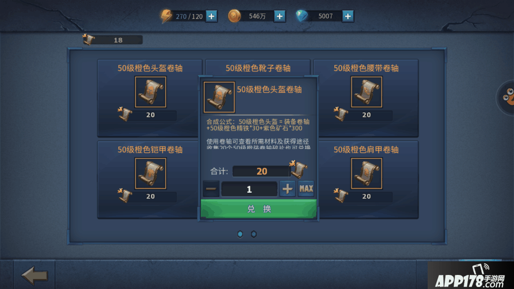 5、橙色装备卷轴要通过获取橙色装备碎片一定数量兑换橙色卷轴。橙装碎片主要来源是通过打野怪(见上图)获得,另外可以通过商店、竞技积分兑换、充值、族战奖励等一些渠道获得。