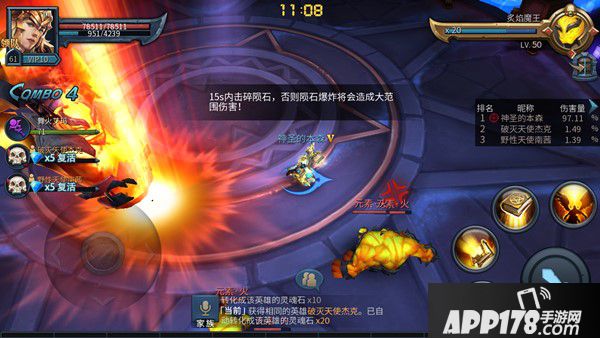 还有一点:boss会不时召唤出一个岩石,这时候会提示你15秒内不打破岩石会发生大爆炸,这个大爆炸是全屏秒杀伤害,所以不想被秒杀的话就要乖乖上去打,好消息是这个岩石很好打,随便扔一个技能就够了。