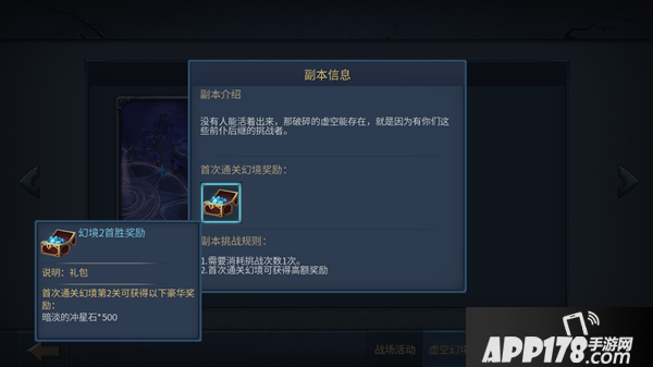通过奖励:暗淡的冲星石*500,解锁虚空幻境第三境——双生魔王。