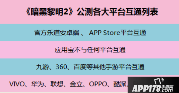 如图所示《暗黑黎明2》共分为四个端:乐道官服(包括ios和安卓)、应用宝独服、硬核独服、安卓混服。以上四种端口互不相通,因此跨服家族战也将分为四个战场。