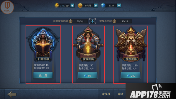 3.除了祈福以外,家族成员一起组队下本获得的家族礼包里面也有家族贡献哦~