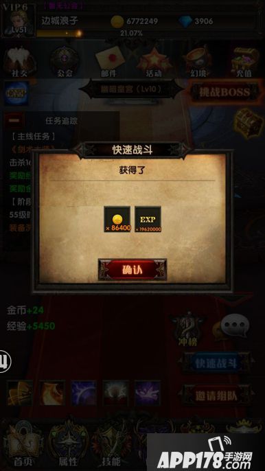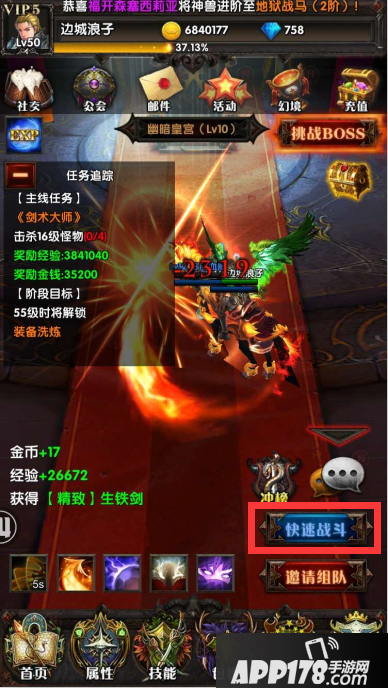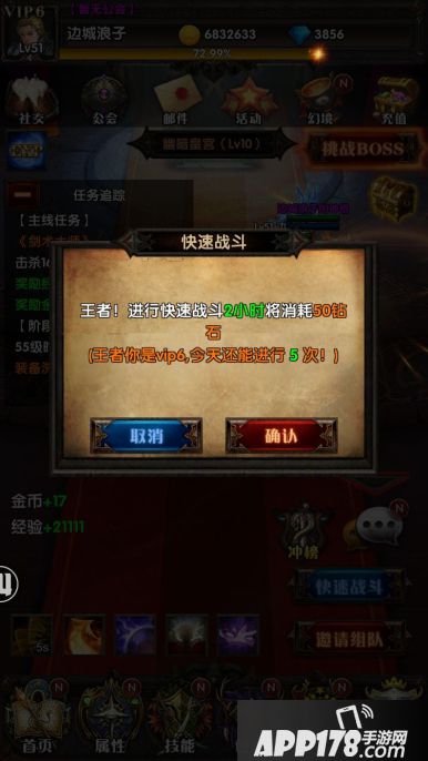 想必眼尖的玩家都留意到了游戏的主界面上有一个快速战斗的选项,对于想快速冲级的玩家来说,这是一个非常重要的功能,可以仅仅花费几十个钻石就获得战斗几个小时的经验效果,是不是很超值很节约时间呢^^