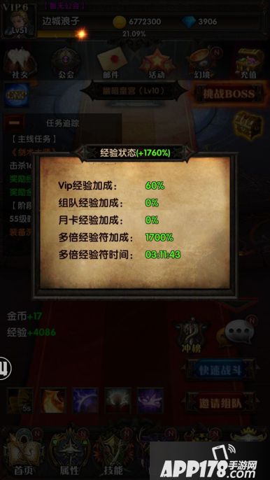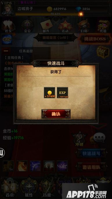 以下是在1760%经验加成时快速战斗的效果,最后获取7097万经验值!