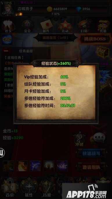请看在不同经验加成情况下快速战斗的效果,以下是260%经验加成时快速战斗的效果,最后获取1962万经验值。
