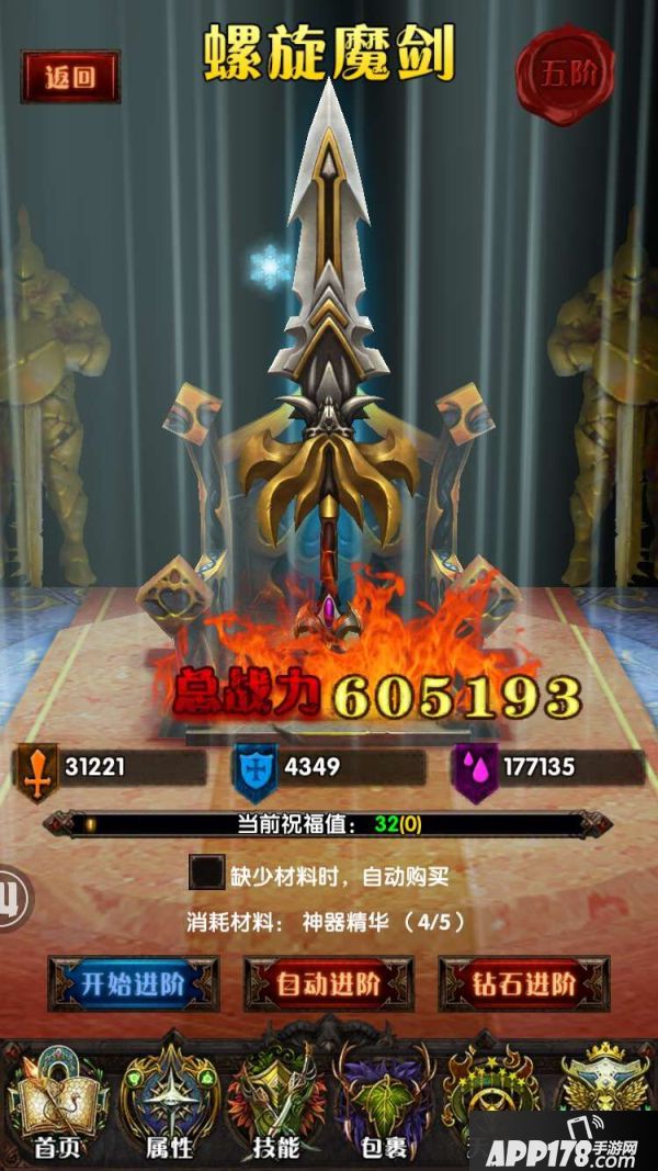 游戏中神器共计分为十阶:复仇之剑、天选之剑、雷神之怒、邪龙魔剑、螺旋魔剑、阿隆戴特、玄光圣剑、朱诺星剑、宿命者该隐、死神德莱弗斯。