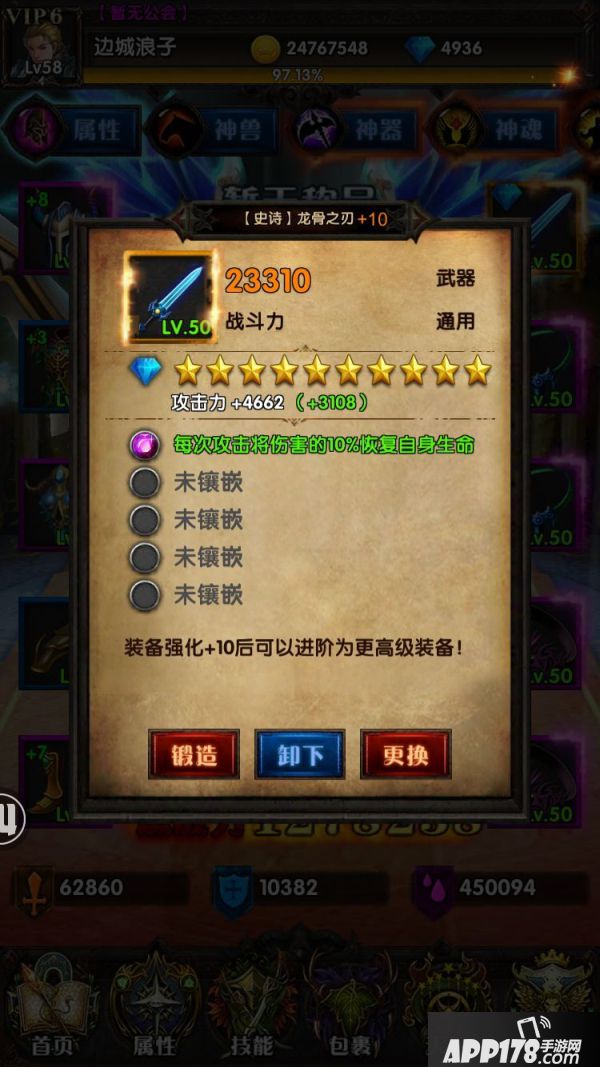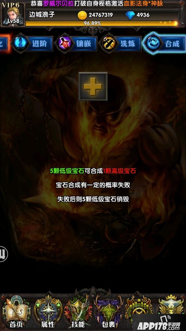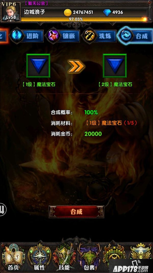 另外,宝石本身还可以进行强化,就是合成功能,低级别的宝石可以合成高级别的宝石,高级别的宝石具备更强的属性,也会更大的提升你的战力,让你在副本和PK中更加得心应手。