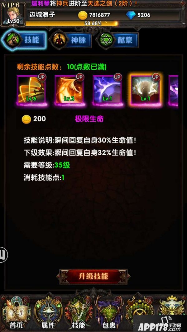 极限生命:瞬间回复自身一定生命值