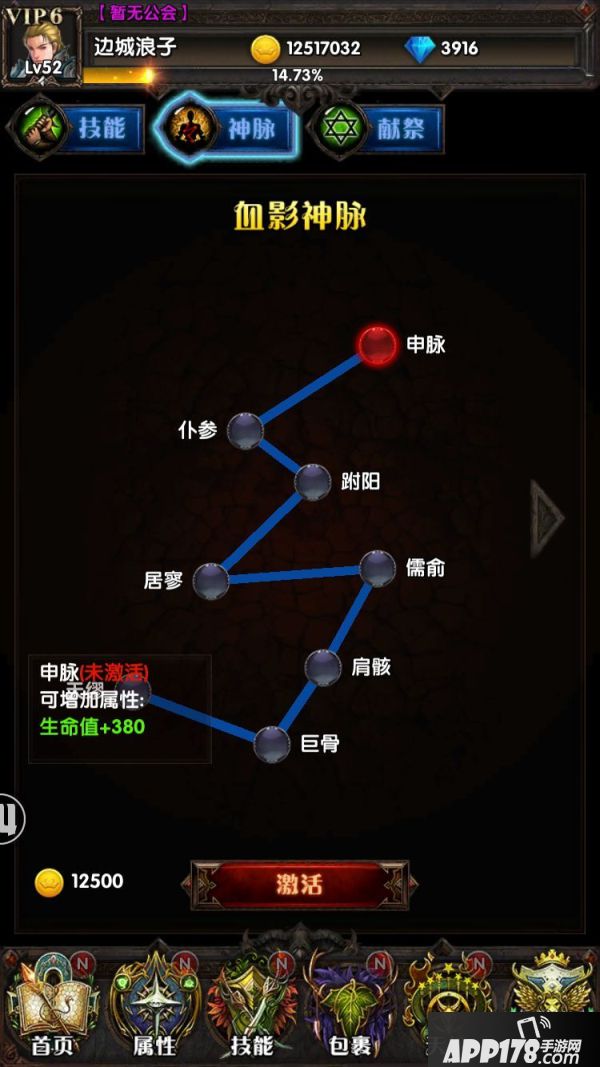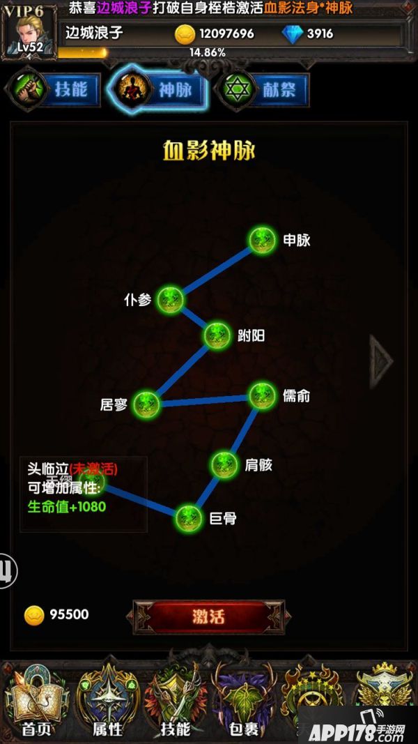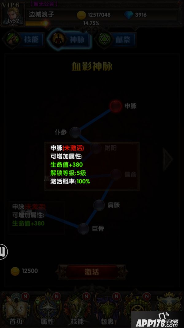 点击神脉上某个穴位点即可看到激活的前提条件和激活后的效果。
