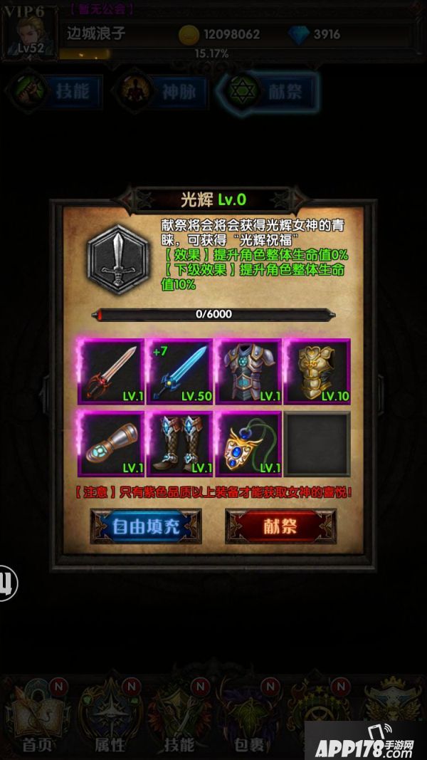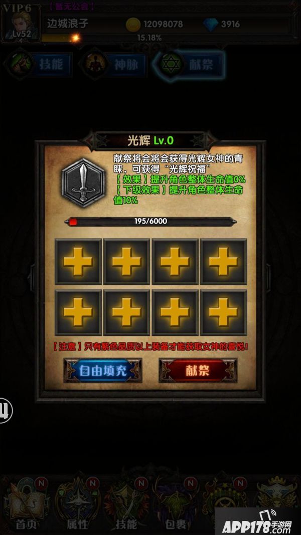 游戏中玩家献祭出紫色品质以上的装备就可以获得神灵的祝福: