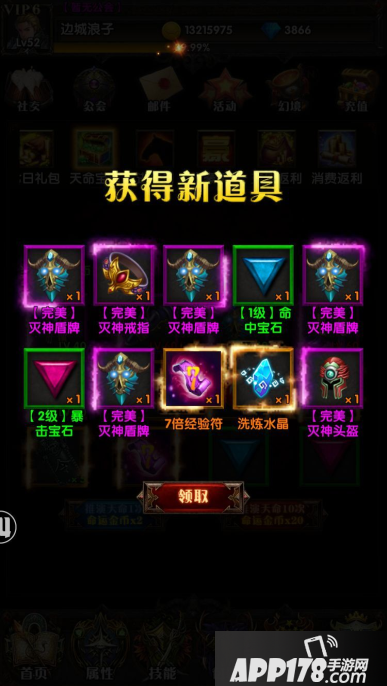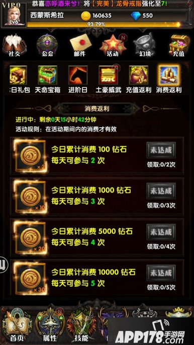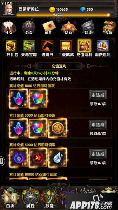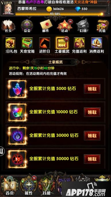 充值返利:玩家累计充值达到一定的数量,就可以获得N多道具奖励,都是强化装备,进阶神魂,神器的稀有材料,确实性价比很高。