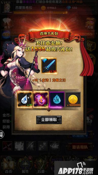 首充大礼包:充值任意金额获得价值1888元大礼包!注意,是任意金额哦!太超值了,不买都对不起自己。