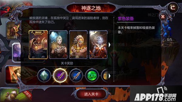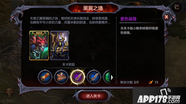 完成关卡内的BOSS关卡,将有小概率获得紫色装备。