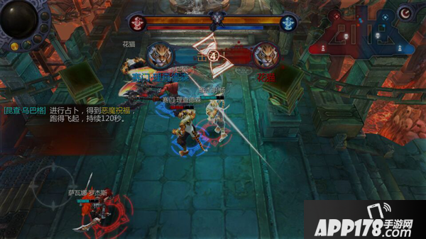 单凭玩家和小兵攻击水晶塔是很吃力的。在3V3地图左上角和右上角有两个据点,玩家站在光圈里等一段时间即可完成占据。同时占领两个据点时,可以进入地图下方的祭坛并迅速占据,召唤出强大的怪物帮手进攻地方的水晶塔。