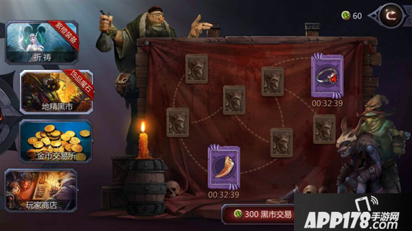 点击主界面右侧的“地精黑市”,可以使用声望抽取紫色、蓝色饰品。也可能获得经验卷轴、金币卷轴、帕特克里魔石(附魔材料)