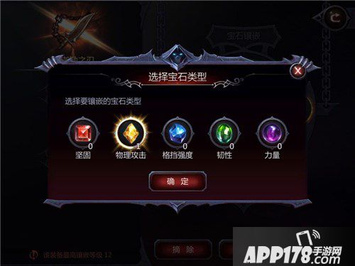 镶嵌:点击加号选择你需要的镶嵌宝石点击确定后,按镶嵌就可以完成一次宝石镶嵌。
