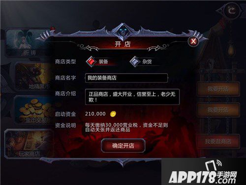 ④ 排名店铺:玩家可以使用金币竞拍商店的排名,出的价格越高你的店将会越靠前,竞拍金额不退还,第二天的凌晨生效,有效期1天。
