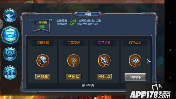 从30级起,每达到一个新的等级即可领取奖励,奖励包括各级装备,神兵进阶石,羽翼之灵,金币等