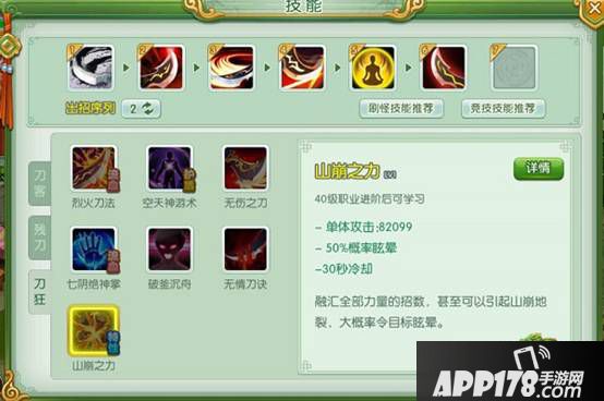 在40级进阶到刀狂后,又有7个神技供你学习。有能够造成生命流失的技能,有反伤、减伤技能,有暴击伤害技能,其中还有一个很强大的特性技能,单体攻击强大并且能够大概率造成目标眩晕。
