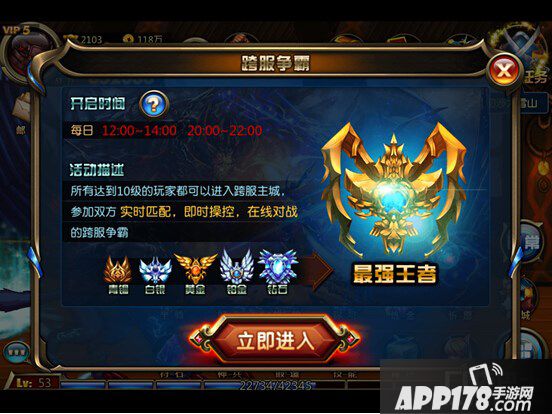 玩家还可以参与多样的活动玩法:BOSS挑战(包含:普通、精英、噩梦多种难度)、魂之试炼(爬塔)、竞技场、跨服PVP等