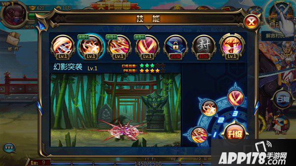 幻影突袭:向四周发射回旋飞刃,将敌人击打浮空,范围较广;打怪指数3颗星,PK指数4颗星;冷却时间5秒,攻击次数4次,造成精神消耗18MP。