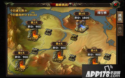 《霸道天下》巅峰挑战由30个随机模式的PVE关卡组成,玩家挑战不需要任何体力或次数。在进行挑战时,成功挑战前一个关卡后才能挑战下一个关卡,具有很高的刺激度。当然,每过关一个拿到巅峰宝箱也是一件非常有快感的哦。