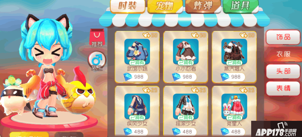 (1)游戏时装、炸弹造型、萌宠等非常丰富,对女性玩家有较大吸引力。