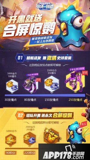 在探险家驰骋于启明星之谷时,也别忘了把自己的现实好友也介绍给《堡垒前线》,一起开黑,默契满分!在活动期间,每位探险家都可以邀请一位好友绑定成为超能战友,每天通过相互赠送金币、组队参与排位赛等方式增加彼此的友情点。随着友情点的累积,就可激情解锁史诗紫金潮流套装等丰厚奖励!相信穿上这件象征着友谊的酷炫时装,你会成为整个启明星之谷最靓的崽!