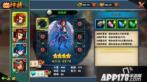 宝石有等级,初始等级为1级,宝石的等级越高,宝石的附加属性数值会随之增长。消耗3个同等级宝石和部分铜钱可以合成1个高1级宝石,宝石合成100%成功。