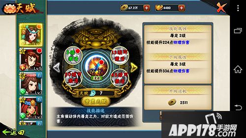 玩家在天赋界面可以升级连击技和奥义技。连击技和奥义技升级不冲突,消耗铜钱可以升级技能,但连击技和奥义技等级不能超过武将等级。