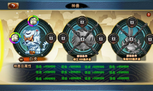 玩家获取相关神兽后,将直接增加玩家主角人物相关属性,在同等状态下,有神兽助手的玩家在基础属性数值上明显优于其他玩家,而对神兽进行升级强化后,所得到的数值提升还会层一定几率上涨。