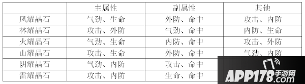 各个晶石的属性加成倾向如下