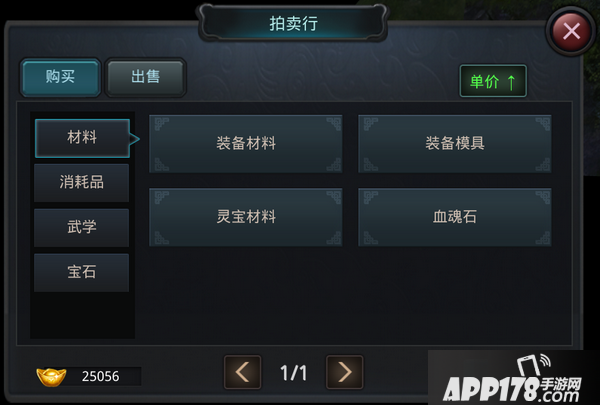 拍卖行界面由“购买”、“出售”两部分构成。在“购买”界面里可以进行物品搜索与购买;在“出售”界面则可进行物品寄卖。