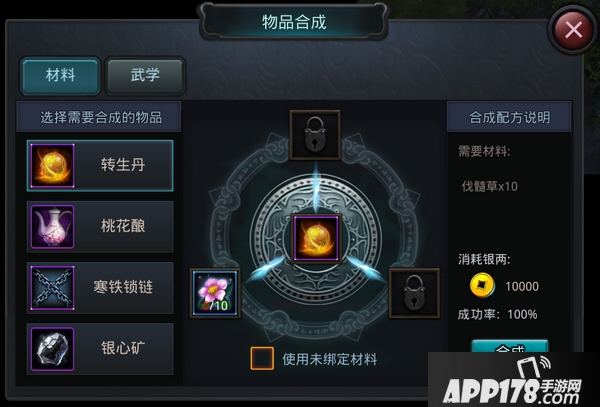 合成系统是游戏中许多物品的重要产出途径,可分为材料合成及武学合成2部分。