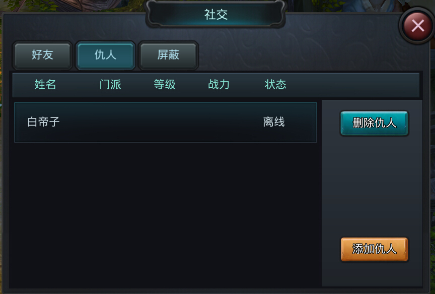 系统会将杀害你的人自动加入仇人列表。
