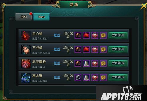 点击活动界面即可查看各阶级世界BOSS所在地点以及刷新时间