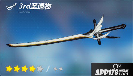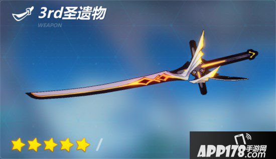 上个文明纪元制作而成的近身格斗型适应性作战兵器,由于利用类似律者核心的物质驱动,刀身会持续散发出金黄色的神秘光芒。和同星级武器相比,【3rd圣遗物】属于攻击低但会心高的类型,需要通过维持连击数的方式增加伤害。