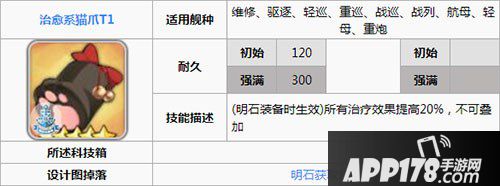 治愈系猫爪的治疗加成效果只能给明石用,其他任何船用只是增加了一些耐久。