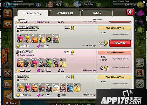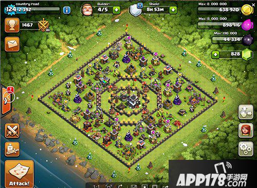第一个方法是推平,因为只有把外面所有的东西都清了,才会把目标瞄准内墙的大本和黑罐,但把外面的东西都清了,你还能剩多少兵力?我内墙还有三个电塔和一个连弩。请不要忘记,我是等于牺牲了8个金水罐来消耗你的兵力。