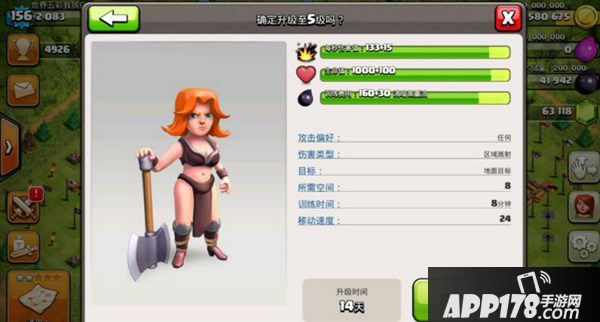 5级武神:每秒伤害:148 生命值:1100 建造所需资源:190 升级所需资源:11万黑 所需实验室等级:8级 所需大本营等级:10 升级所需时间:
