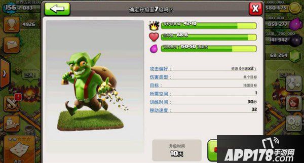7级哥布林:每秒伤害:52 生命值:74 建造所需资源:200 升级所需资源:675万水 所需实验室等级:8级 所需大本营等级:10 升级所需时间:
