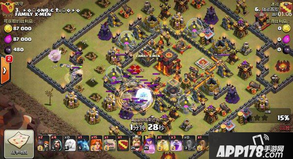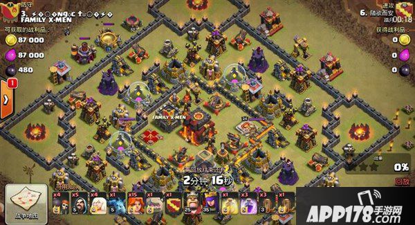 由于清边结束,所以女王顺利进入到空当中,开始攻击防空火箭,并进行引援。如果之前苍蝇没有清掉十一点方向建筑物的话,天女会悲催的一直向十二点钟方向滑去,并且天使会被防空火箭慢慢打掉。