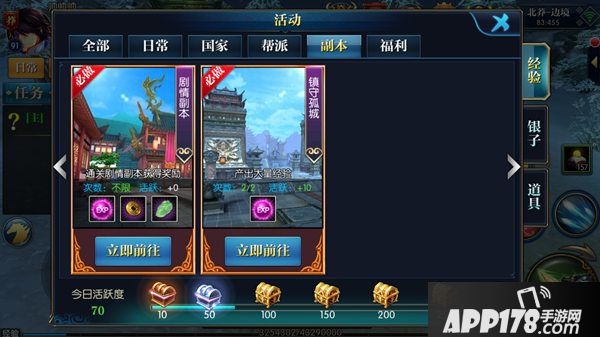活动界面打开以后在副本,经验选项,就能进行快速筛选,美人在孤城,请将军速速前往救援。