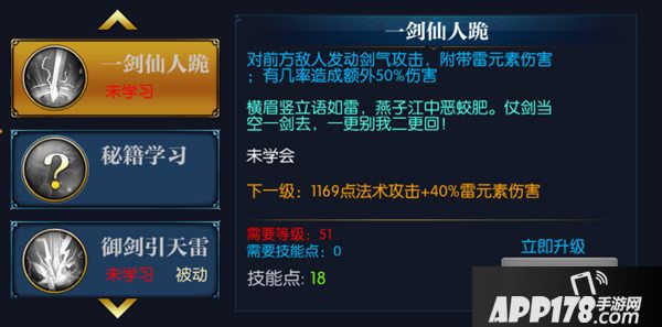 51可以学习主动技能一剑仙人跪