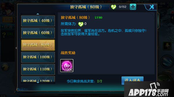 独守孤城活动每天只能参加两次,将军注意选择适合自己等级的阶段来进行挑战,点击进入副本就可以守护美人了。
