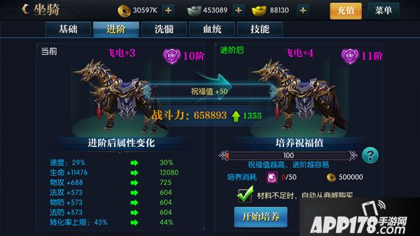 一匹坐骑良好与否,血统占据了很大一部分,历史上吕布的赤兔,黄忠的爪黄飞电,无一不是万中挑一的极品宝马,在游戏中,将军们也能获得极品好马。可以在每日副本获得不同的宝马血统丹,也可以在商城购买随机溶血丹,达到数值之后就可以提升品级了,血统品级越高,获得的属性越强。
